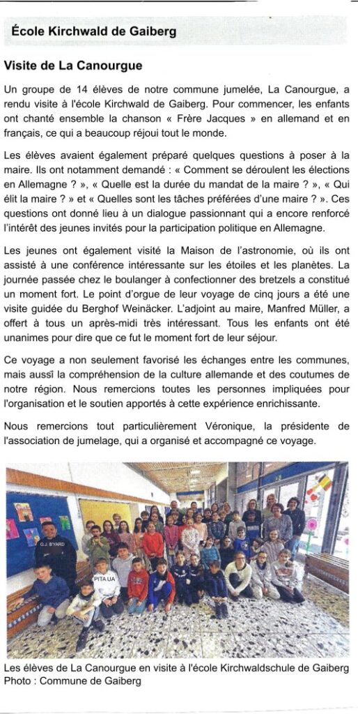 Impressions de la visite des écoliers de La Canourgue à Gaiberg (paru dans le journal local de Gaiberg, le 10 avril 2026)